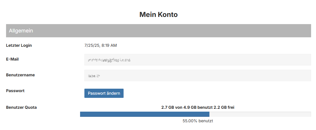 Der Administrator kann die Quota in der Benutzerverwaltung oder in den Benutzer-Reports auslesen.