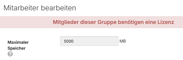 Die Speicher-Quota kann für eine Gruppe in der Konfiguration unter "Gruppen" > "Maximaler Speicher" angepasst werden.