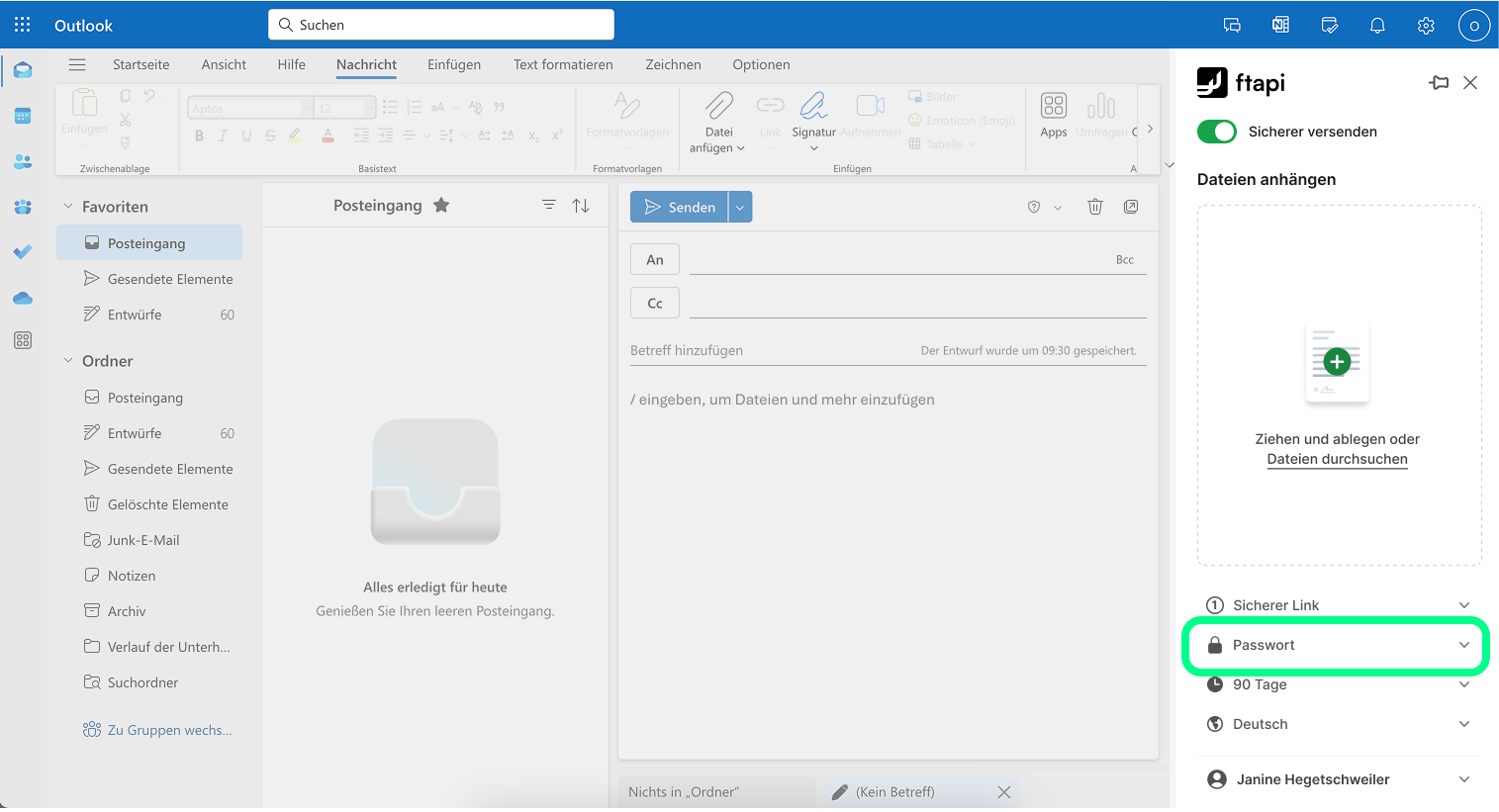 FTAPI Add-in für neues Outlook